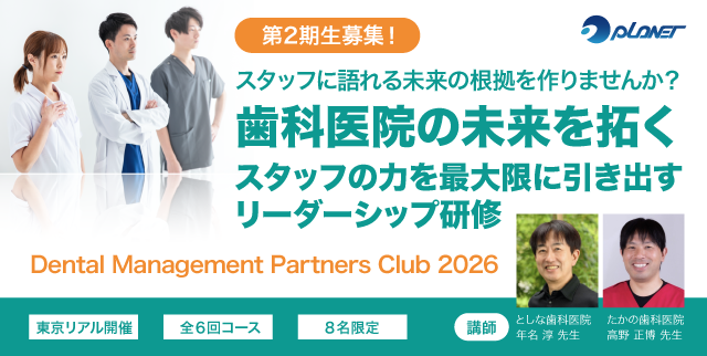 この研修を通じて、院長先生は自身のリーダーシップを磨き、スタッフと共に成長する歯科医院づくりの礎を築くことができます。