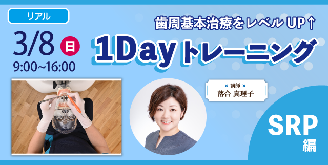 本セミナーは、SRP技術向上を目標に、必要な知識・シャープニング・根面探知・SRP基本操作を実習メインでトータルで学んでいきます。